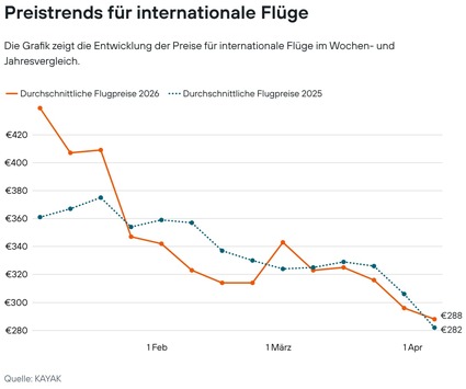 KAYAK Europe GmbH: Berlin (ots) - Wöchentliche Preisupdates für internationale Flugstrecken ab Deutschland - Preise fallen aktuell KAYAK, eine führende Reisesuchmaschine, hat ein neues Flugpreistrends-Dashboard gelauncht. Die Übersicht zeigt wöchentliche ...